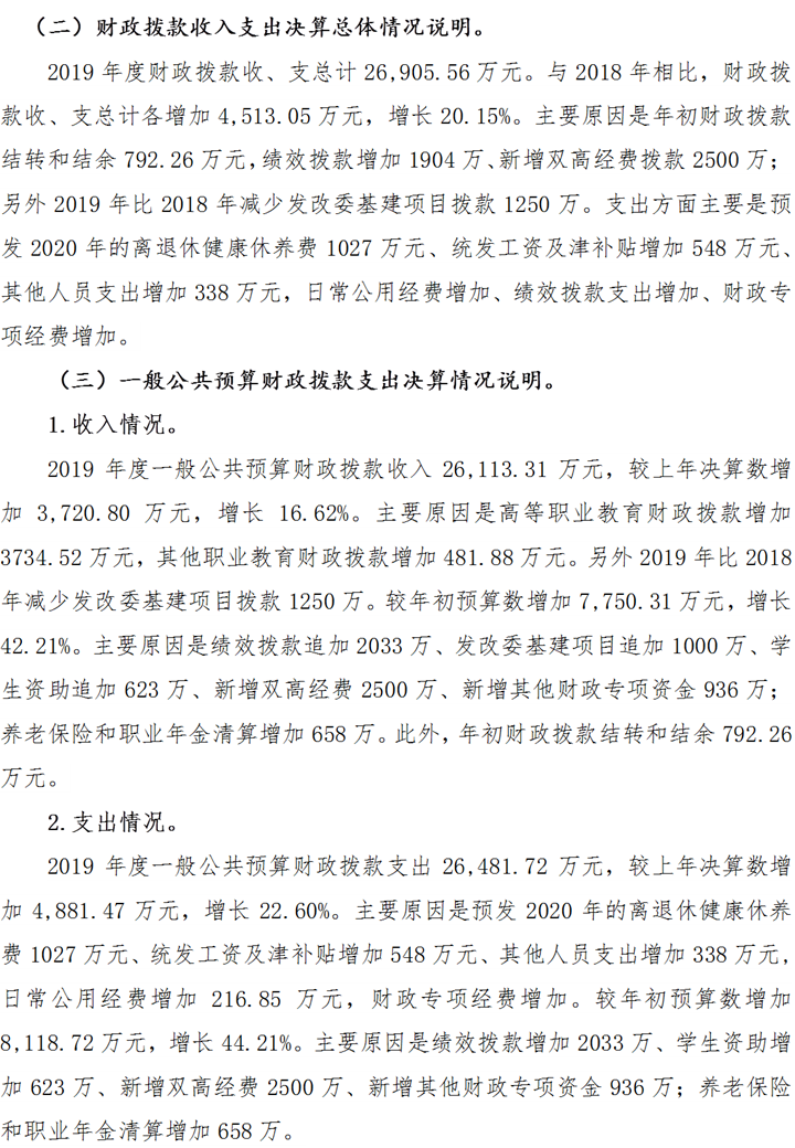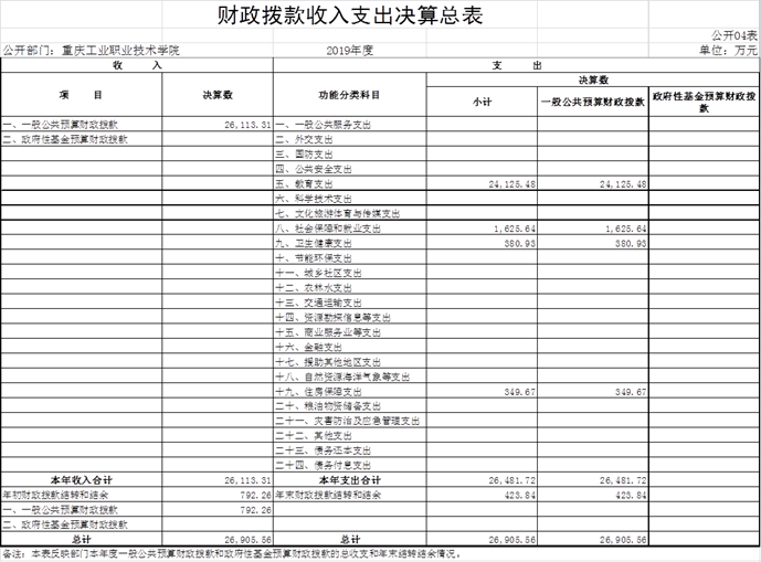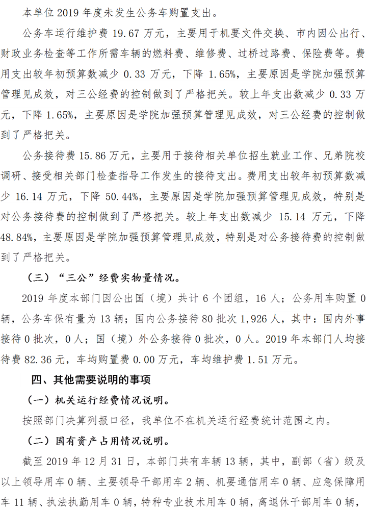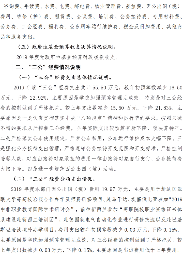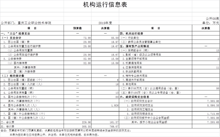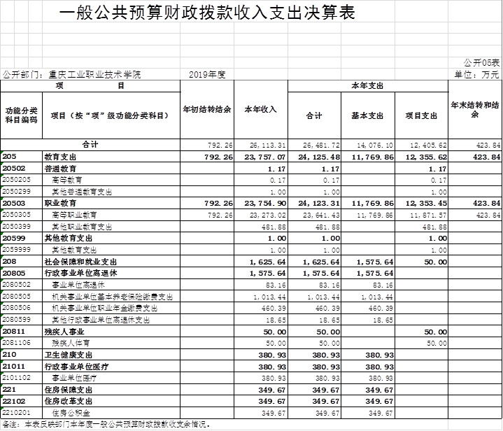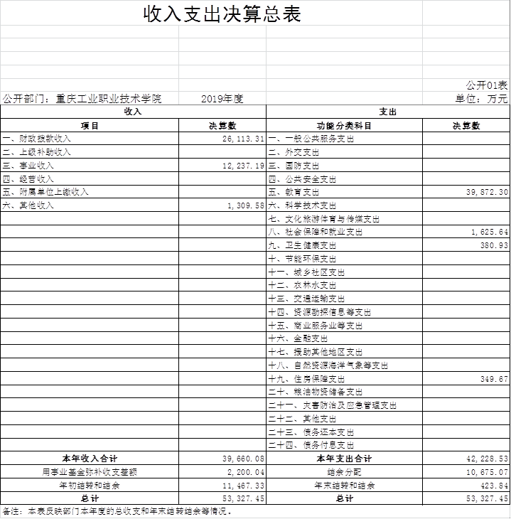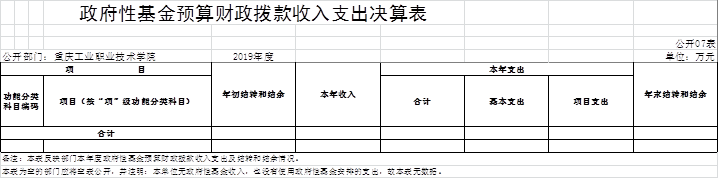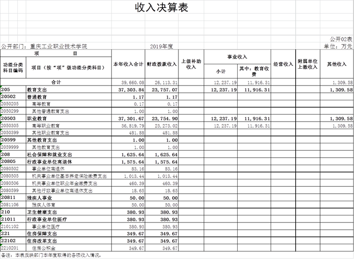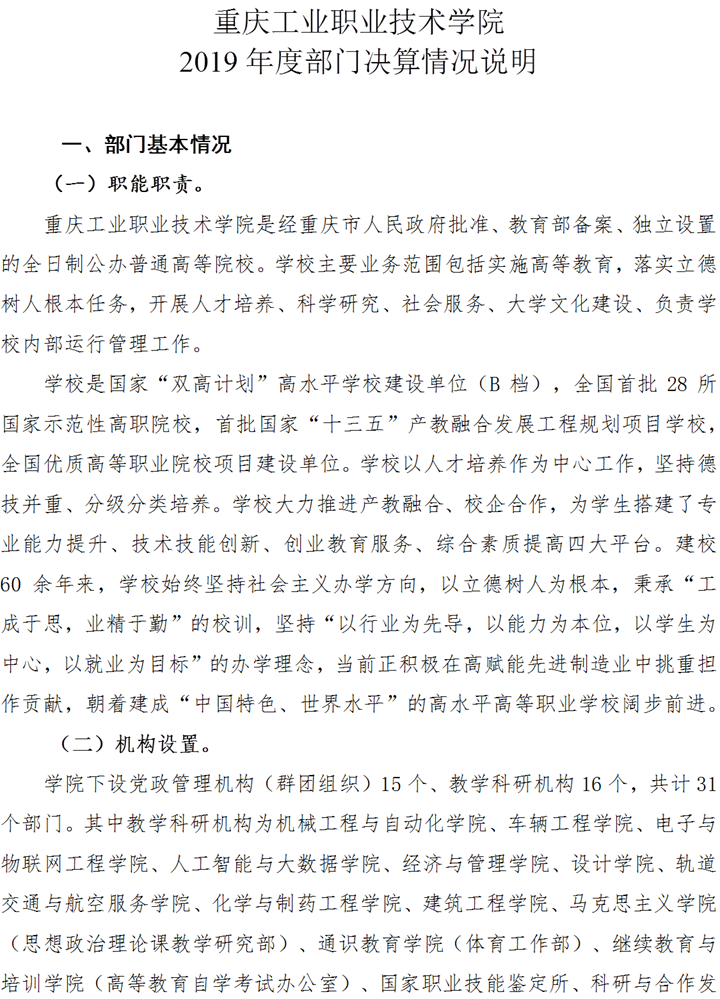 重庆工业职业技术学院2019年度部门决算公开