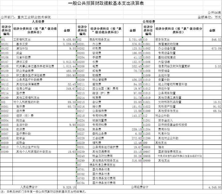 重庆工业职业技术学院2021年度部门预算公开