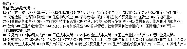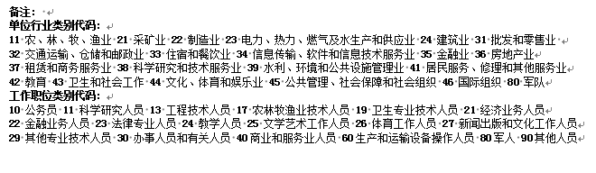 工作职位类别代码(请参照备注填写) |